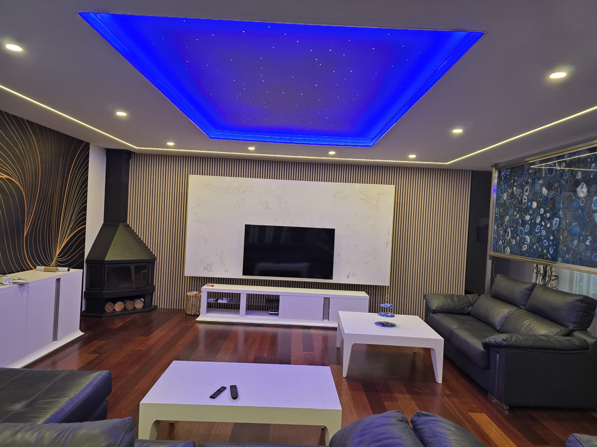 Nuestros techos están presentes en hogares, spas, clínicas, salas de cine, hoteles y exposiciones de toda España. Cada instalación está hecha a mano, diseñada a medida y equipada con tecnología LED inteligente, lo que garantiza una experiencia visual única, envolvente y duradera.