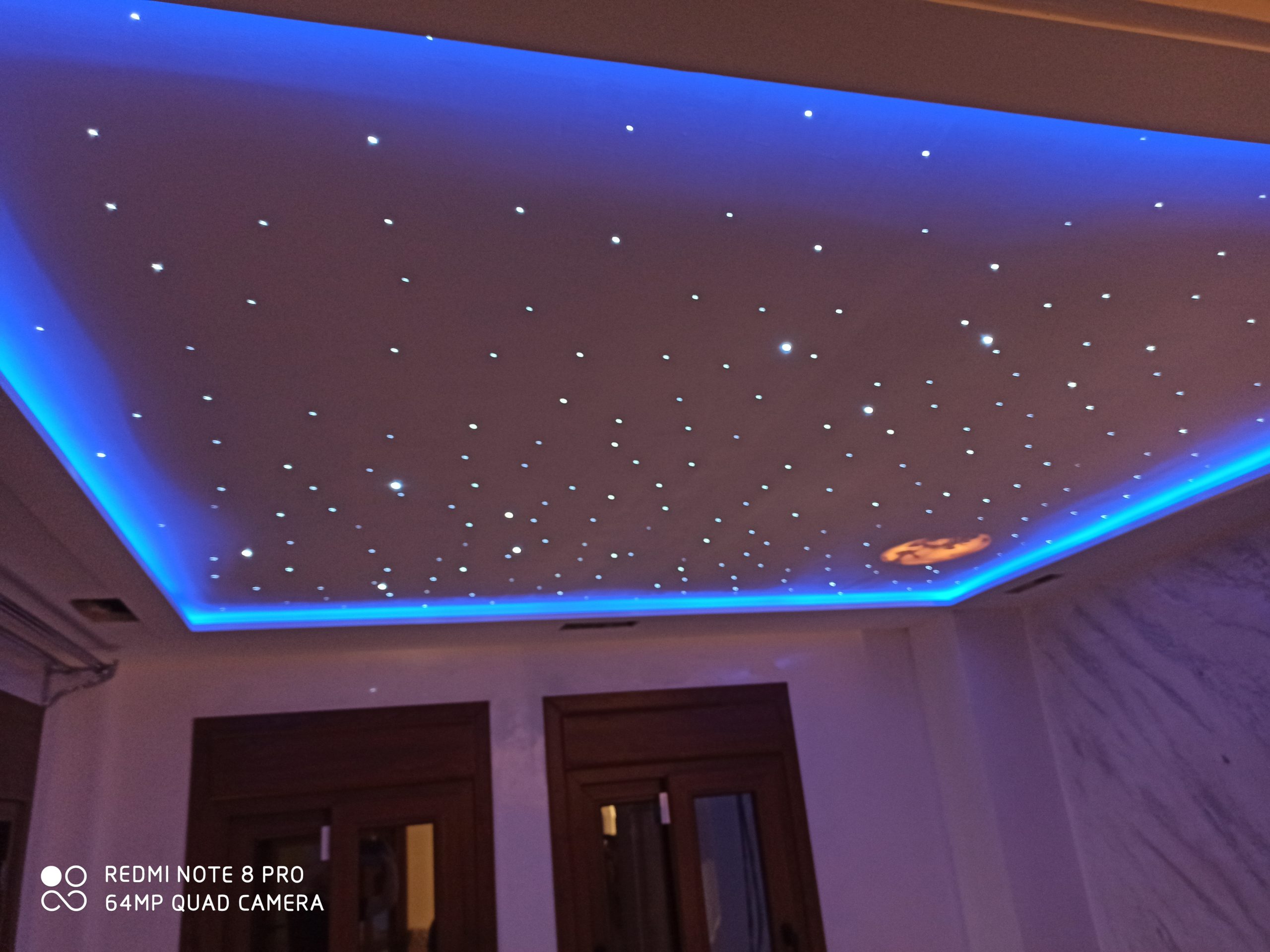 Cada metro cuadrado contiene entre 50 y 80 puntos de luz LED, distribuidos aleatoriamente para simular el cielo real. Cada "estrella" es un LED independiente, con su propio comportamiento. Todo el sistema se alimenta desde una única fuente de luz, garantizando eficiencia energética y larga durabilidad (hasta 70.000 horas).
